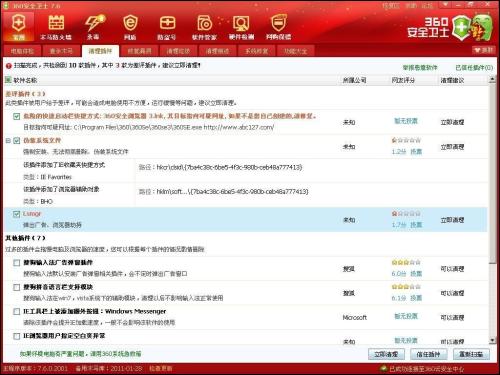 圖2:360安全衛士檢測出的(de)惡意廣告插件