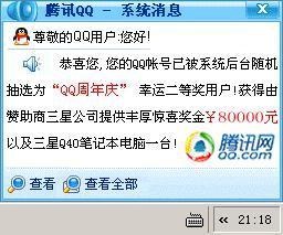 圖6:廣告木(mù)馬僞裝QQ中獎消息推廣釣魚網站