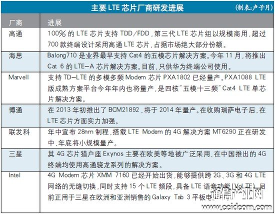 在殘酷的(de)市場(chǎng)競争下(xià),到了(le)LTE時(shí)代,涉足芯片的(de)廠商已經越來(lái)越少。而對(duì)于産業鏈相對(duì)薄弱的(de)TD-LTE來(lái)說,芯片廠商的(de)支持就彌足珍貴。目前,已經有17家芯片廠家已經推出或正在研發LTE TDD/FDD融合多(duō)模芯片,高(gāo)通(tōng)、海思、Marvell等廠商已經推出五模芯片。