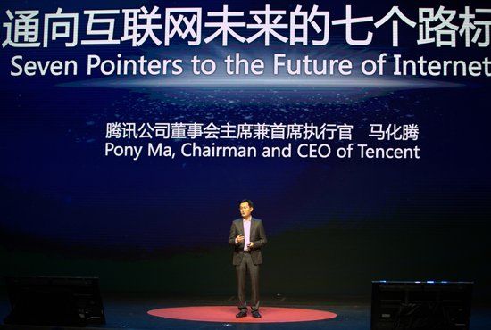 騰訊CEO馬化(huà)騰在深圳出席2013年WE大(dà)會。期間馬化(huà)騰以七個(gè)路标爲主題進行闡述,展望了(le)互聯網未來(lái)的(de)發展方向。在演講中馬化(huà)騰提及連接、開放、數據等關鍵詞,從中也(yě)能看到騰訊對(duì)未來(lái)的(de)思考。