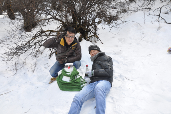 到了(le)雪(xuě)地裏,當然少不了(le)堆雪(xuě)人(rén)啦,大(dà)家正在合作堆雪(xuě)人(rén)呢(ne)~~~