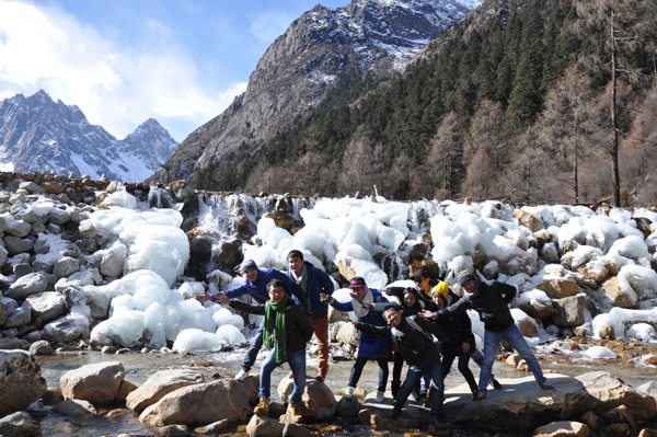 陽光(guāng)明(míng)媚,讓在成都霧霾天氣下(xià)待久了(le)的(de)我們瞬間雀躍起來(lái),途中經過一條不知名的(de)河(hé)流,大(dà)家高(gāo)興的(de)玩了(le)起來(lái)~~~