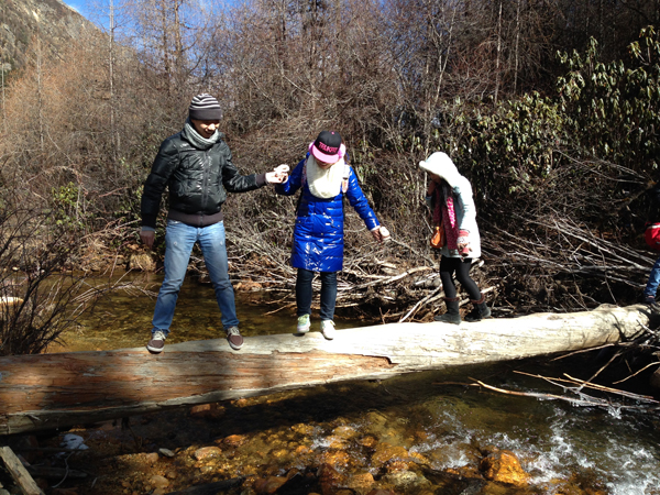 過獨木(mù)橋,同事們互相攙扶著(zhe),多(duō)有愛(ài)啊~~~