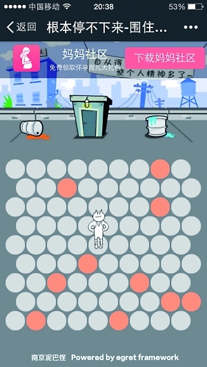 從上周三起,朋友圈就被一隻表情很欠、身材妖娆的(de)貓無情“刷屏”了(le)。“我用(yòng)了(le)11步圍住神經貓,擊敗89%的(de)人(rén),你能超過我嗎?”遊戲規則很簡單,在一個(gè)異化(huà)版的(de)圍棋界面上,玩家需要做(zuò)的(de)隻是點擊圓點圍住“神經貓”。但其默認分(fēn)享的(de)模闆設置,讓朋友們紛紛陷入“秀智商”模式,你追我趕地比拼最小步數,按遊戲宣傳語的(de)話(huà)說,就是“根本停不下(xià)來(lái)”。