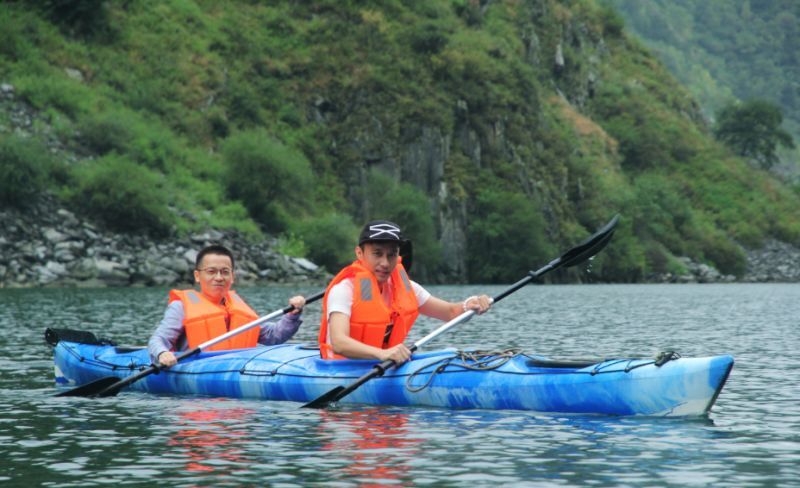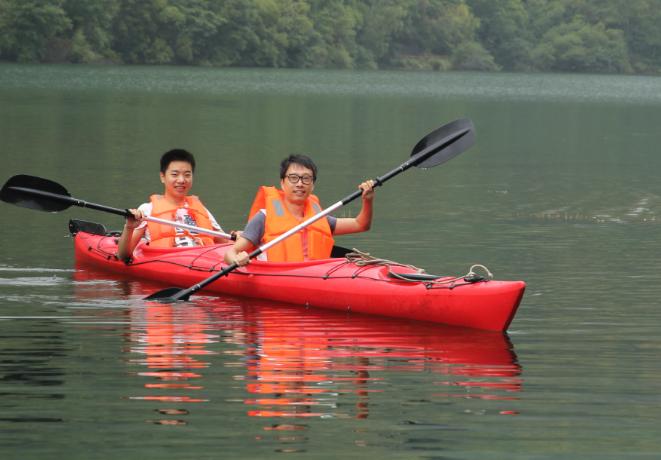 結束了(le)皮劃艇的(de)遊玩,該吃(chī)飯了(le)