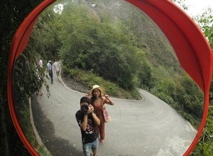 墨海因岩壁斷裂下(xià)陷積水(shuǐ)和(hé)山體崩塌阻塞水(shuǐ)流而形成,面積28畝,水(shuǐ)沉澱在黛青色的(de)岩石上,深不見底,四周林(lín)立的(de)山峰、綠葉成蔭的(de)樹木(mù)、翠綠的(de)蒼松和(hé)雜(zá)生的(de)花草(cǎo)倒映其中,水(shuǐ)裏水(shuǐ)外相互作用(yòng),水(shuǐ)就變得(de)了(le)深藍如墨,就像傾倒的(de)一池墨水(shuǐ)。