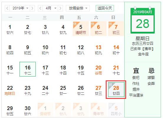 2019年4月(yuè)28日(星期日)、5月(yuè)5日(星期日)上班。