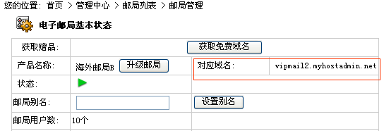 注:首先需要在業務管理(lǐ)-郵局管理(lǐ)處查到郵局對(duì)應的(de)域名.如mail2.myhostadmin.net,(注意,該值以實際查到的(de)爲準,mail2僅供參考)