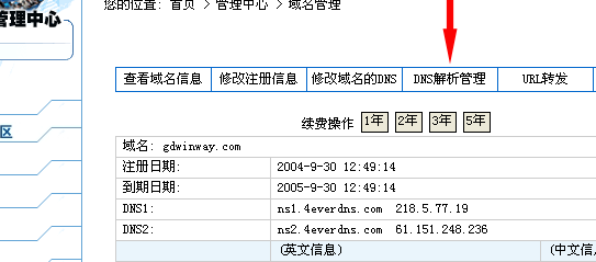 2.進入域名管理(lǐ)中的(de)MYDNS管理(lǐ)(如下(xià)圖)