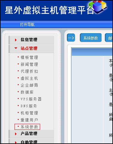 登陸後,點擊“站點管理(lǐ)”——“系統參數”,如圖: