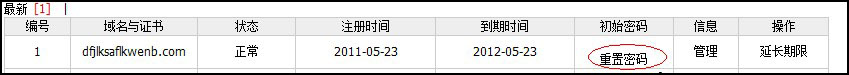 會返回到域名管理(lǐ)列表後,再點擊“重置密碼”,即可(kě)用(yòng)新的(de)密碼來(lái)登陸管理(lǐ)域名了(le)。如圖: